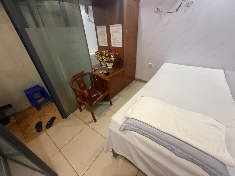 こちらのお店Googleマップで検索してもなかなか出てこないのとフロントのおじいちゃんにメニューあるかと聞いてもなかなか伝わらずとりあえず90分って伝えたらOKとなりました笑